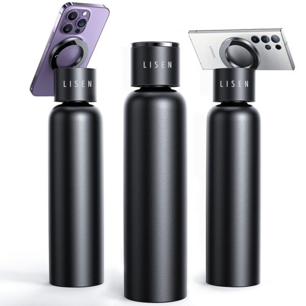 Presentacion: botella de agua magsafe, botella de acero inoxidable de 750 ml para gimnasio, soporte para teléfono, botella d agua aislada con soporte magnetico.